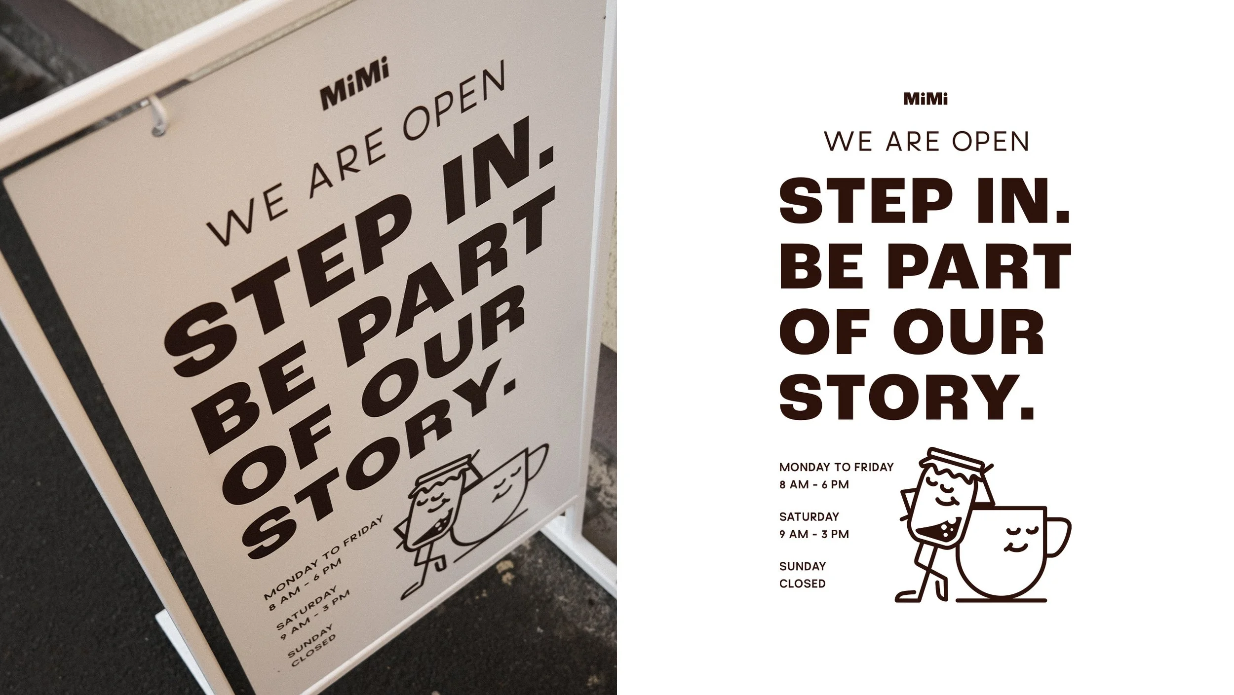 We created the mascot as a friendly, recognisable character with hand-drawn qualities and subtle imperfections, embodying Mimi’s values of authenticity, craft, and community.